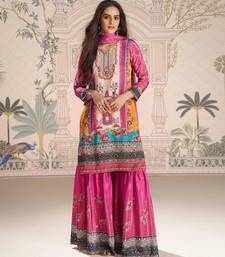 | Product Name | Pink Embroidery And Embllished With Mirror Work Crep Silk Straight Top Palazzo Full Stitched Free Size | |