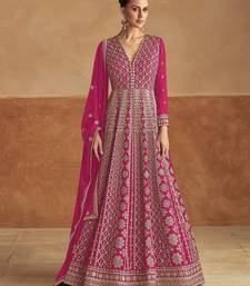 Pink embroidery & sequins work chinon gown - free size stitching (size upto 42") stitched