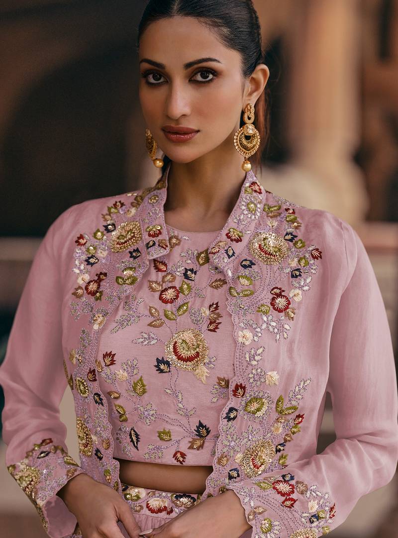 Pink georgette embroidered lehenga set