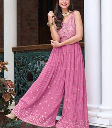 Pink georgette jumpsuit with embroidery and sequins work, free-size stitched (up to 42").
