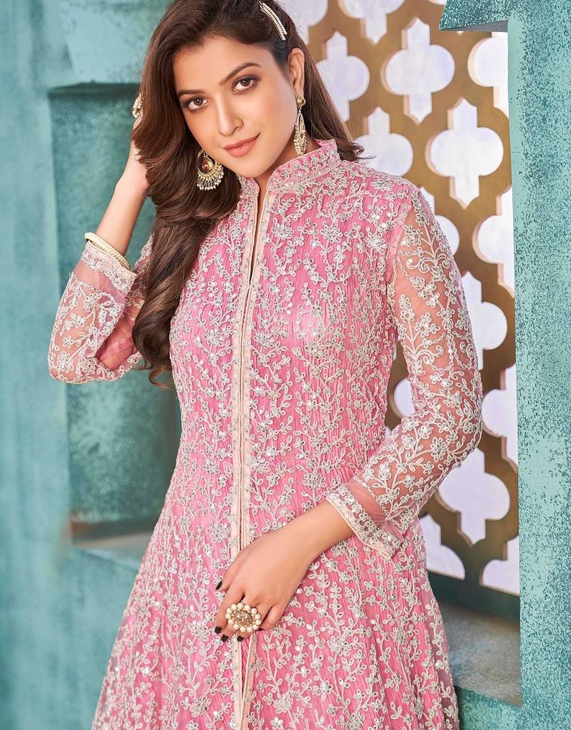 | Product Name | Pink Net Sequins Work Semi Stitched Size Up To 42 Salwar Suits | |
