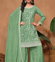 Pista green embroidery & sequins work with chinnon straight palazzo - free size stitching (size upto 42") stitched
