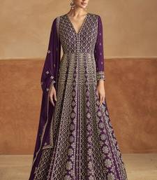 Purple embroidery & sequins work chinon gown - free size stitching (size upto 42") stitched