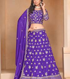 Purple organza sequins work semi stitched lehenga choli size up to 42