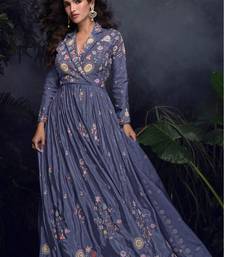 | Product Name | Purple Thread Embroidery And Sequins Chinon Silk Gown Free Size Stitched(Size Upto 42") | |