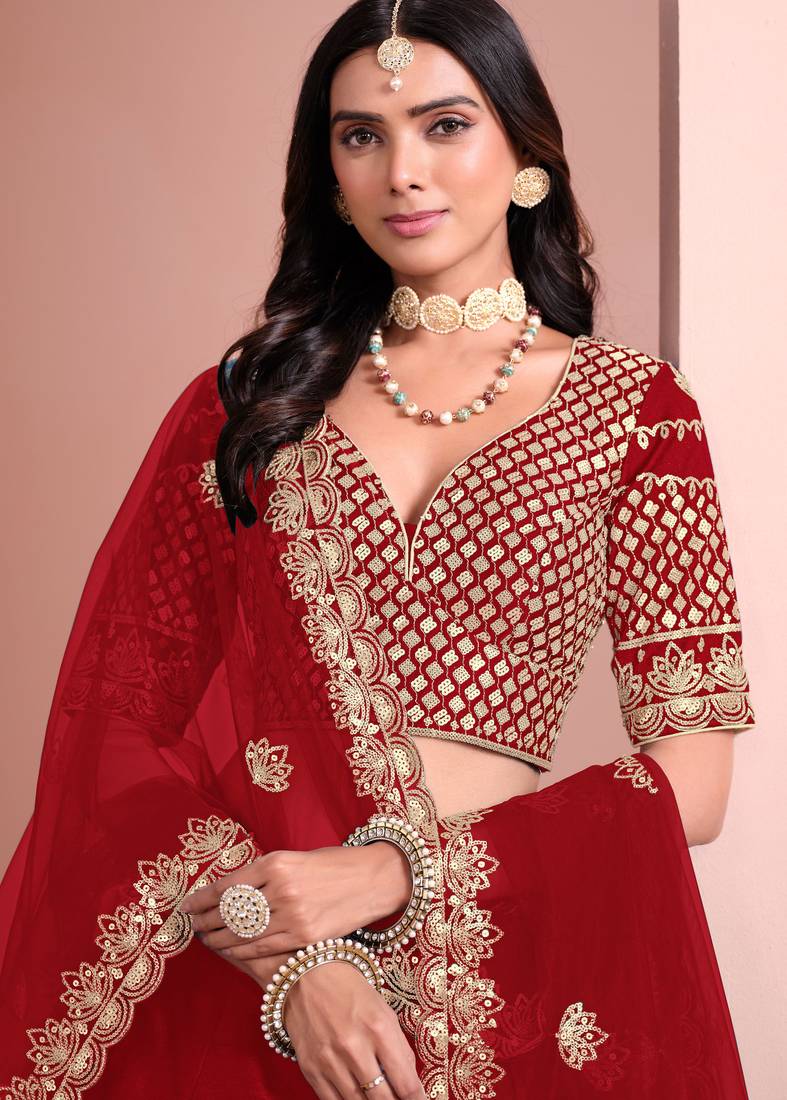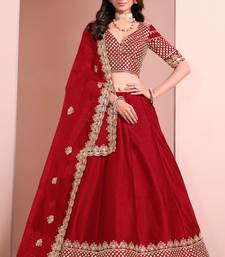 Red art silk sequins work semi stitched lehenga choli size up to 42