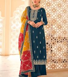 Teal blue chiffon sequins work semi stitched salwar suits suits size up to 42