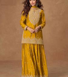 | Product Name | Teal Blue Thread Embroidery & Sequines Chinnon Silk Anarkali Kurta Palazzo Suit Full Stitched Free Size | |