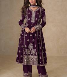 | Product Description | • Wine Chinnon Silk Anarkali Palazzo Suit.