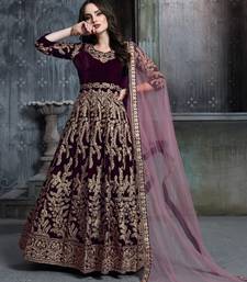 | Product Name | Wine Velvet Zari Work Semi Stitched Size Up To 42 Salwar Suits | |