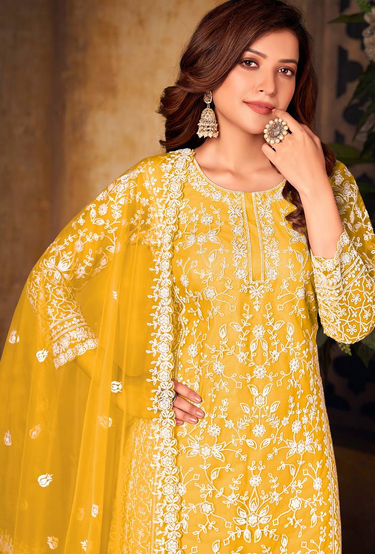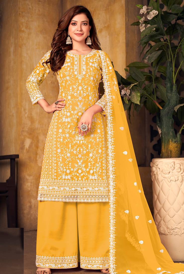 | Product Name | Yellow Embroidered & Sequins Work With Net Straight Palazoo Free Size Stitching (Size Upto 42") | |