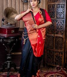 Black hand woven silk blend cotton zari work all seasons sarees