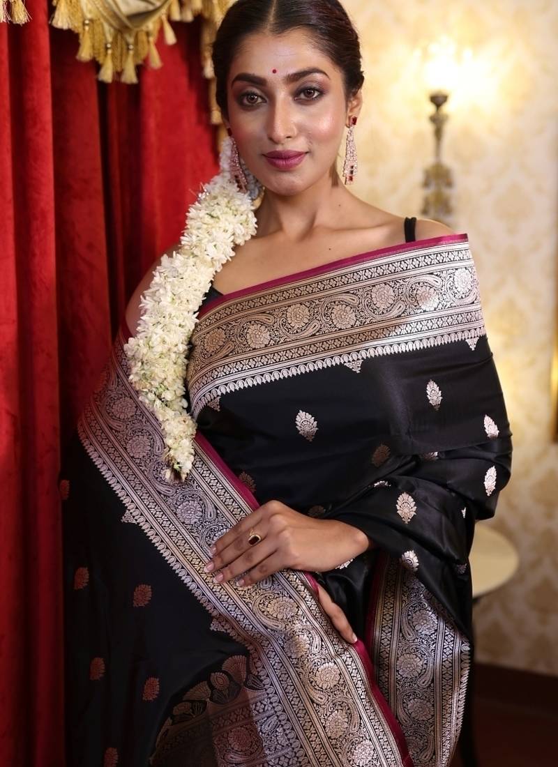 | • | Saree | : | Color- Black / Fabric- Silk Blend |