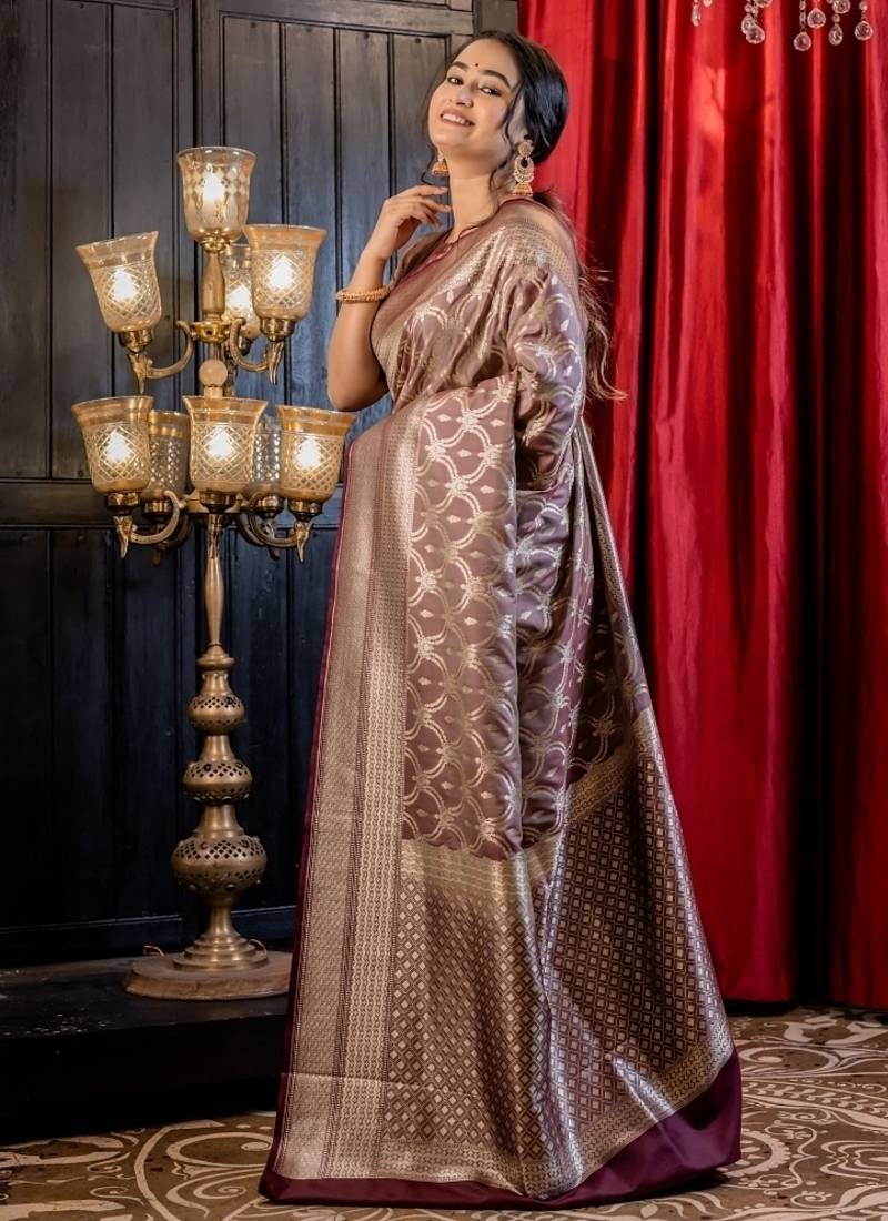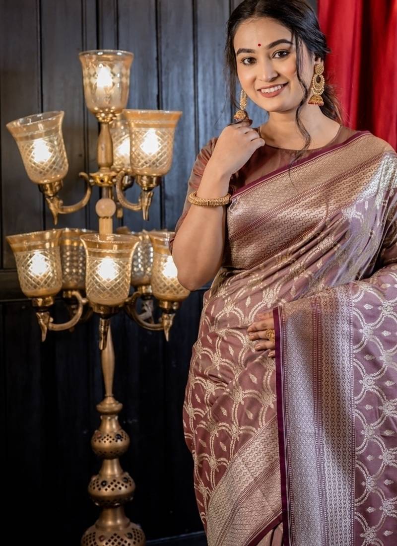 | Product Description | Adorned With All Over Buta & Jaal Patterns In Matte Gold Zari & Enhanced By A Rich Brocade Border, It Captures A Perfect Balance Of Intricate Artistry & Understated Glamour. The Star Of This Ensemble Is The Taupe Brown Soft Katan Banarasi Saree, Whose Warm, Earthy Tone Beautifully Complements The Delicate Golden Shimmer.