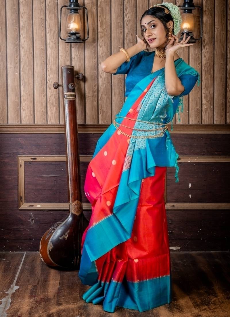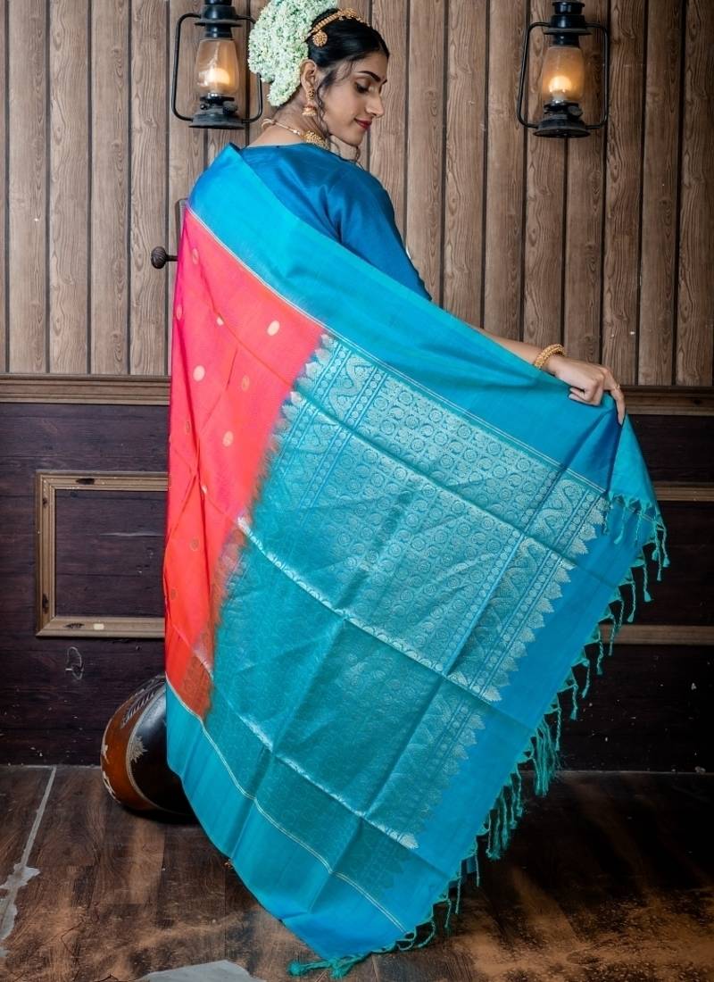 | Product Description | The Blue Dual Tone Pattu Soft Silk Handloom Saree Perfectly Blends Tradition With Bold Hues. The Pattu Soft Silk Fabric Is Adorned With All Over Antique Gold Zari Buta, Adding A Subtle Shimmer Throughout Complemented By Turquoise Blue & Teal Green Dual Tone Plain Border & Pallu, Featuring A Matte Gold Zari Traditional Checks Design That Enhances The Saree’s Timeless Appeal.