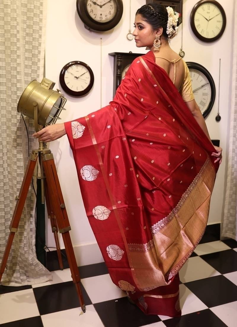 Maroon hand woven katan silk blend banarasi silk blend all seasons sarees