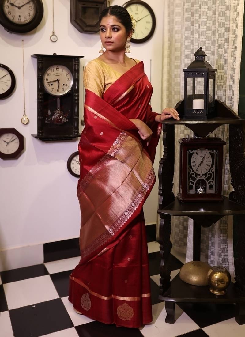 | Product Name | Maroon Hand Woven Katan Silk Blend Banarasi Silk Blend All Seasons Sarees | |
