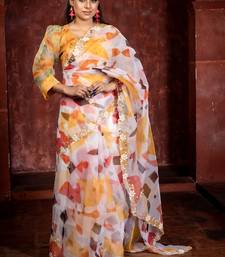 | Product Description | This Enchanting Saree Showcases A Pristine Milky White Pure Organza Base Adorned With All Over Multi Colour Abstract Digital Print & Antique Gold Sequins, Moti &Cut Dana Handwork Floral Buta &Border. The Vibrant Digital Motifs Contrast Beautifully With Delicate Handcrafted Embellishments, Creating A Captivating Blend Of Modern Artistry & Traditional Charm.