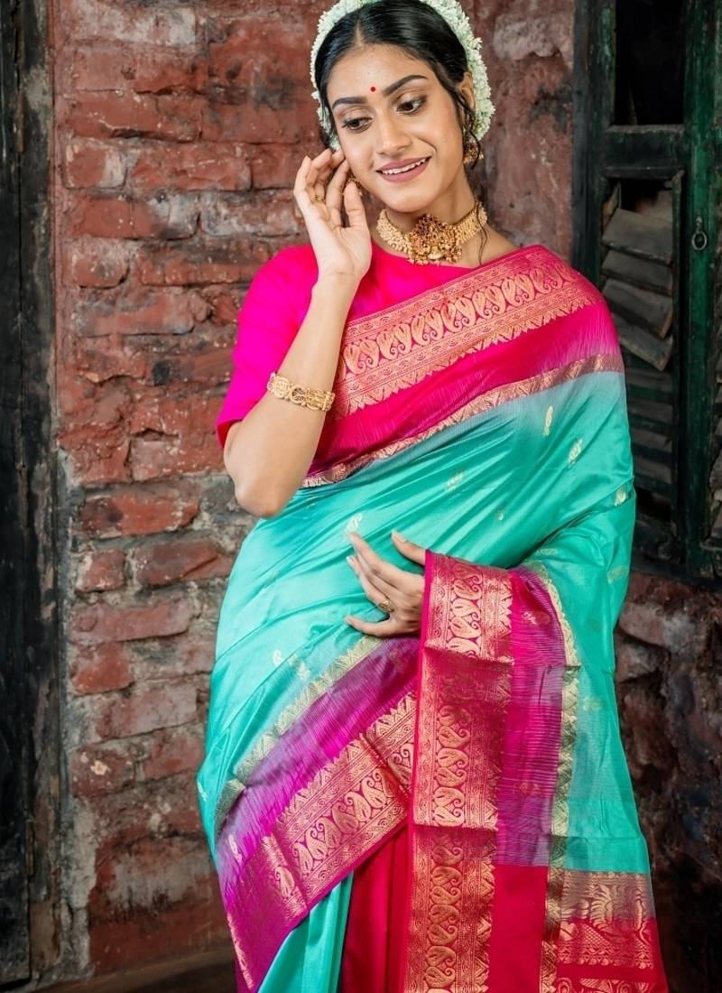 Multicolor woven faux kanjivaram silk blend zari work all seasons sarees