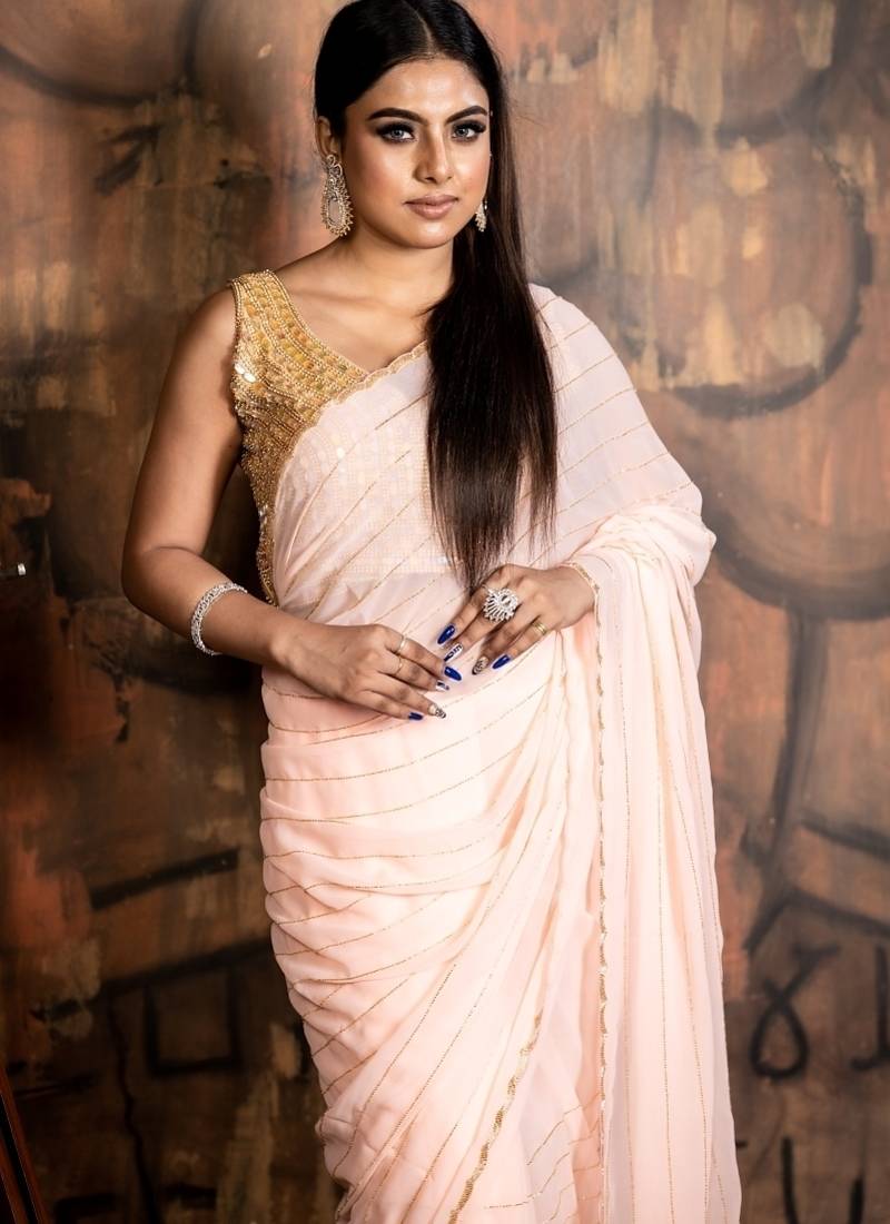 | • | Saree | : | Color- Peach / Fabric- Georgette |