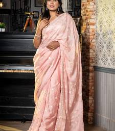 Pink woven organza sequins work all seasons sarees