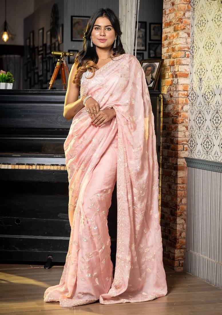 | Product Name | Pink Woven Organza Sequins Work All Seasons Sarees | |
