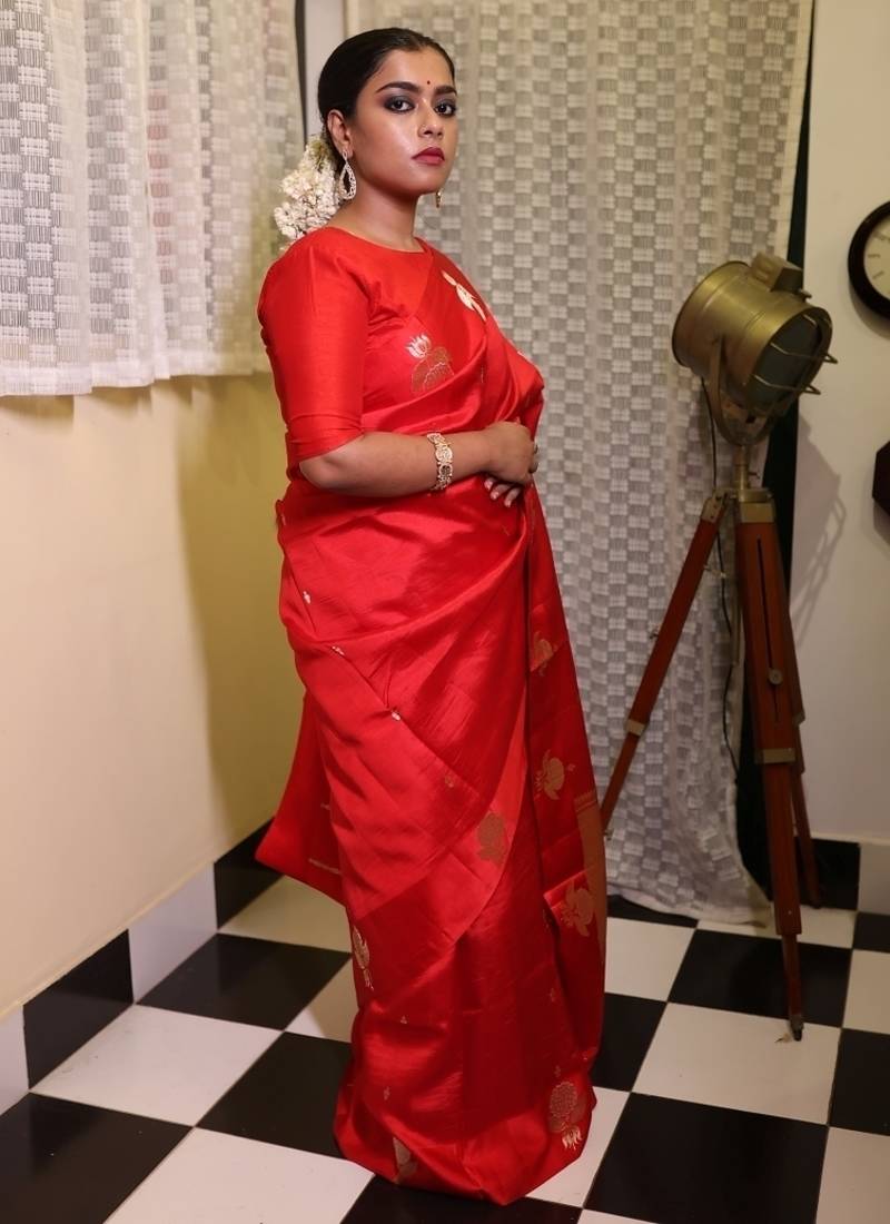 | • | Saree | : | Color- Red / Fabric- Silk Blend |
