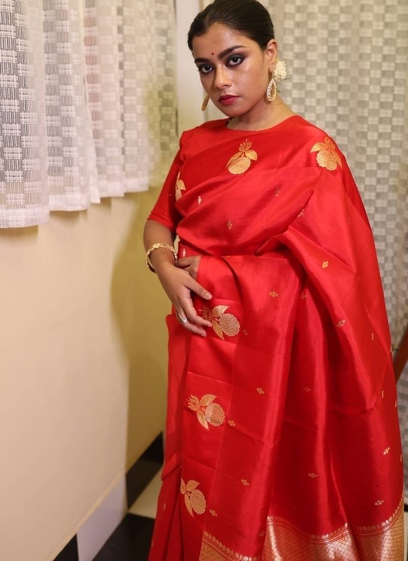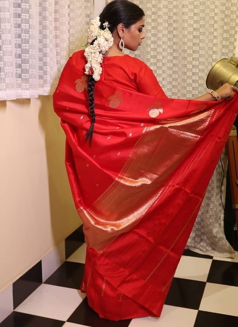 | Product Name | Red Hand Woven Silk Blend Saree | |