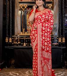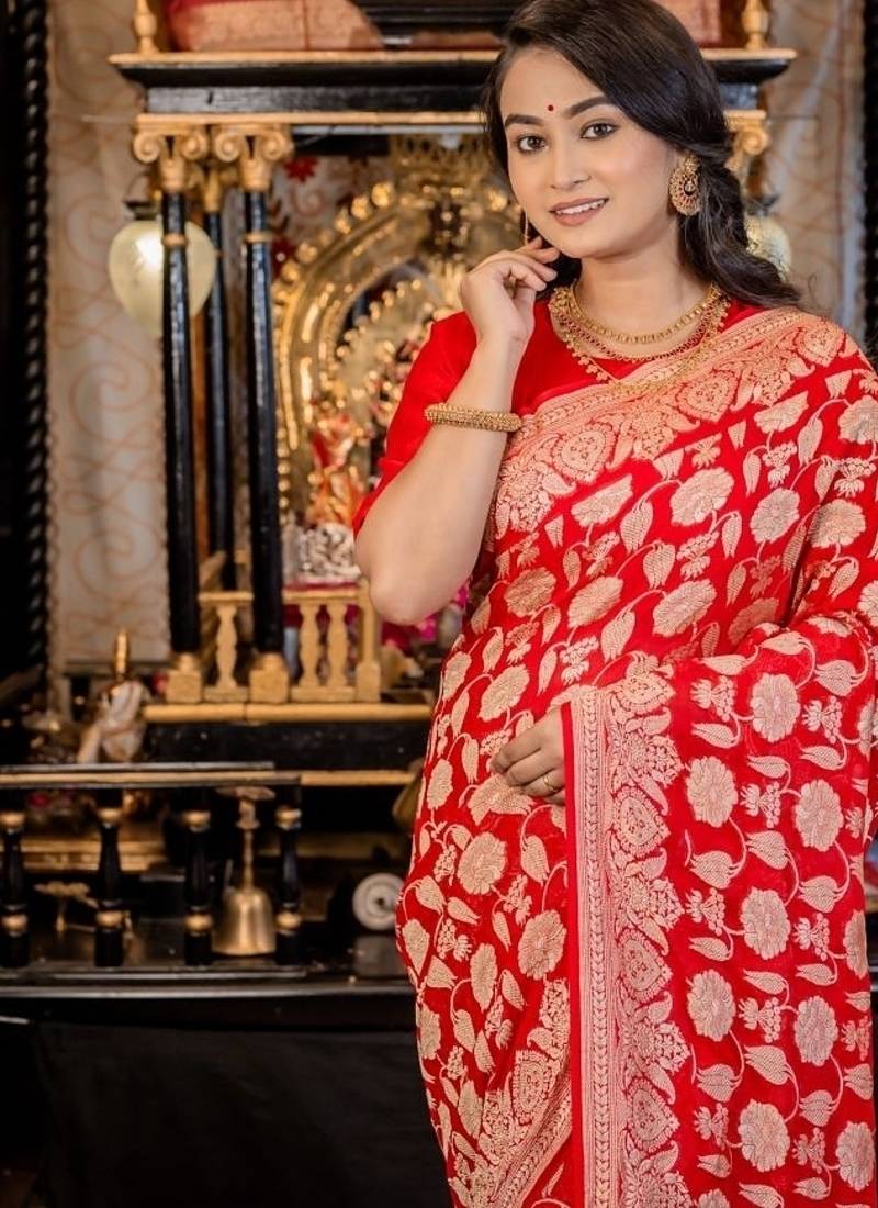 Red woven georgette saree