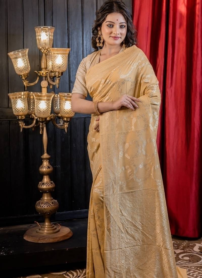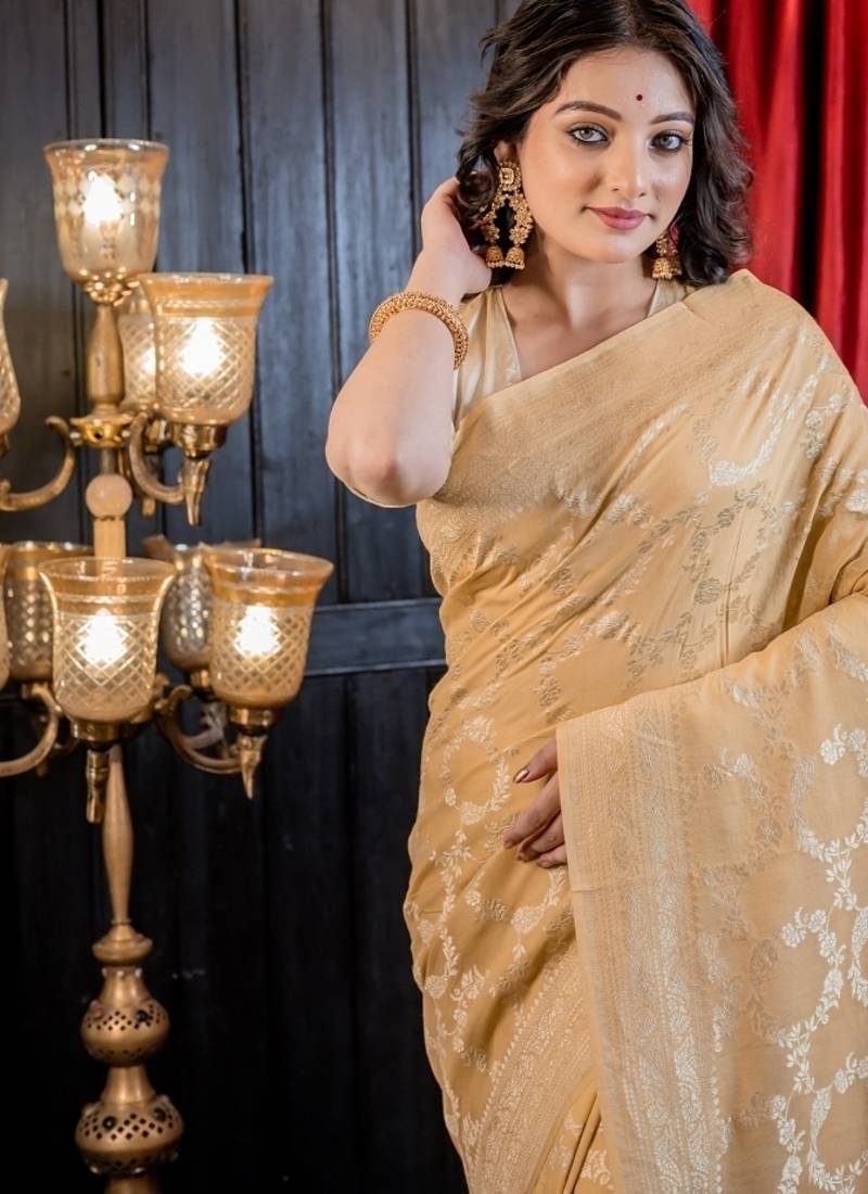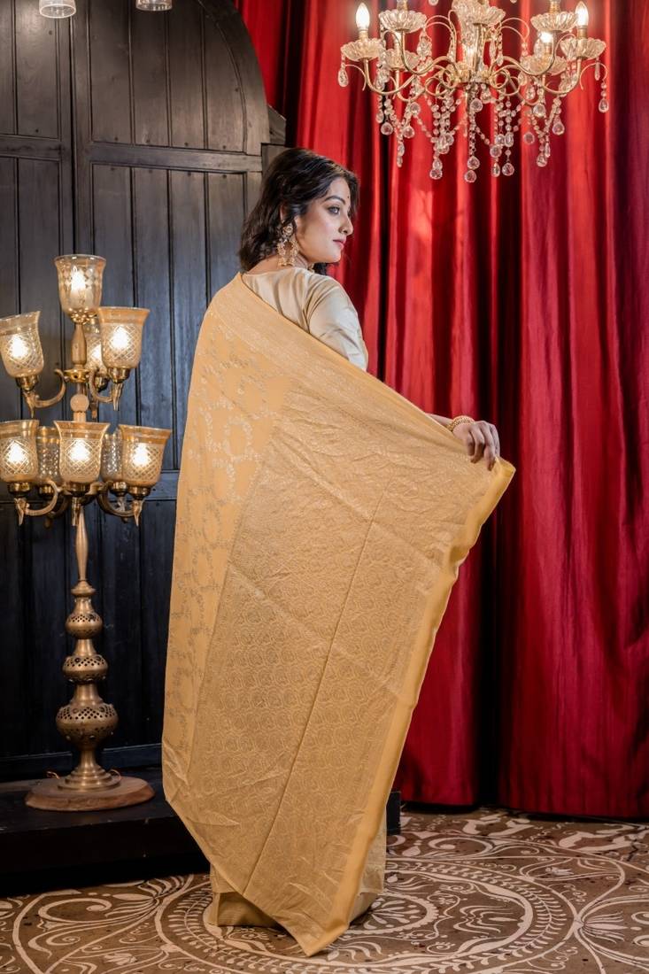| Product Description | Elegant & Understated, The Light Beige Khaddi Munga Banarasi Saree Embodies Timeless Grace. Featuring An All Over Jangla Design In Matte Gold Zari, It Exudes Subtle Luxury With A Gentle Shimmer That Enhances Its Soft Beige Canvas.