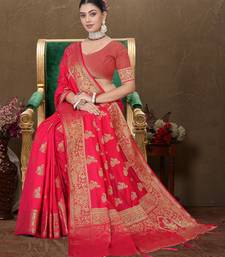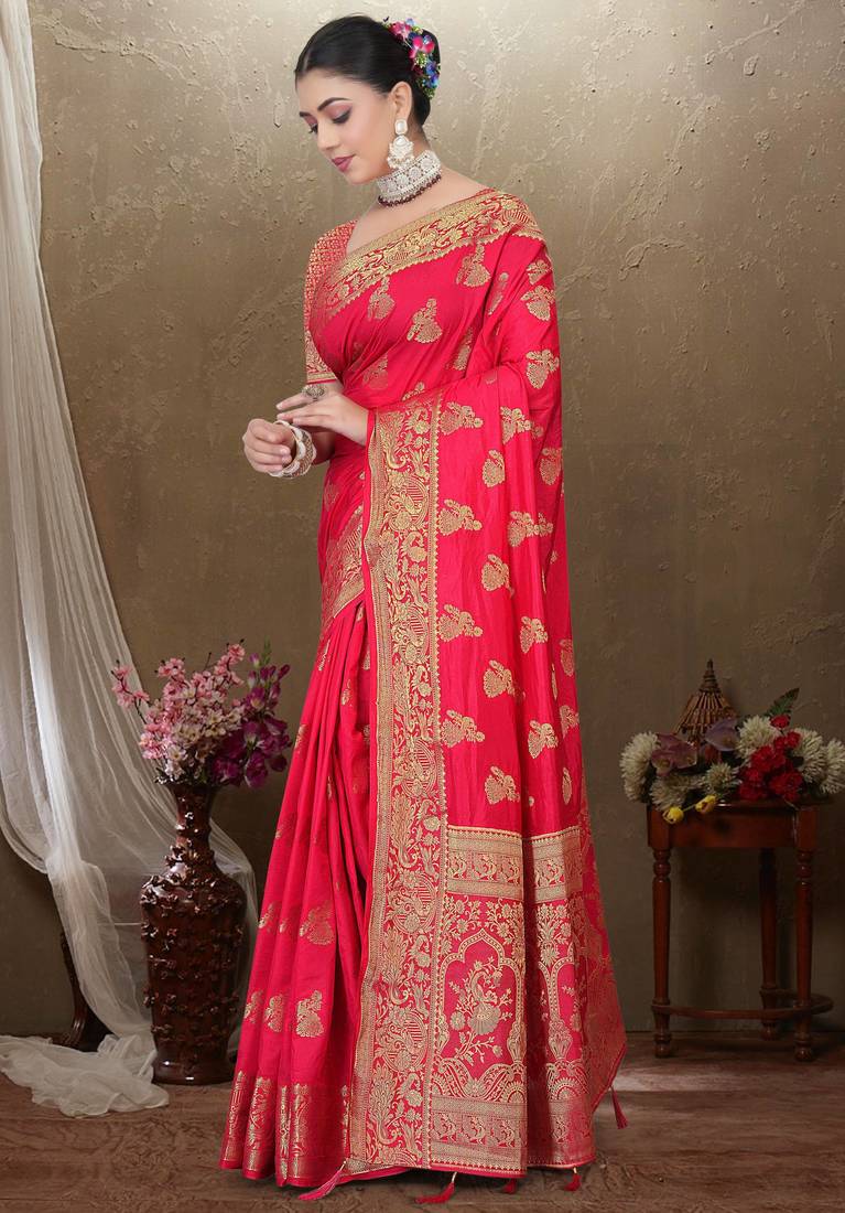 Maharanga red dola art silk saree with rich zari butta work & heavy traditional border | unstitched blouse piece