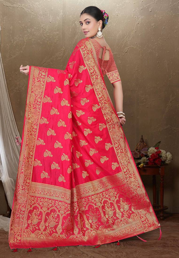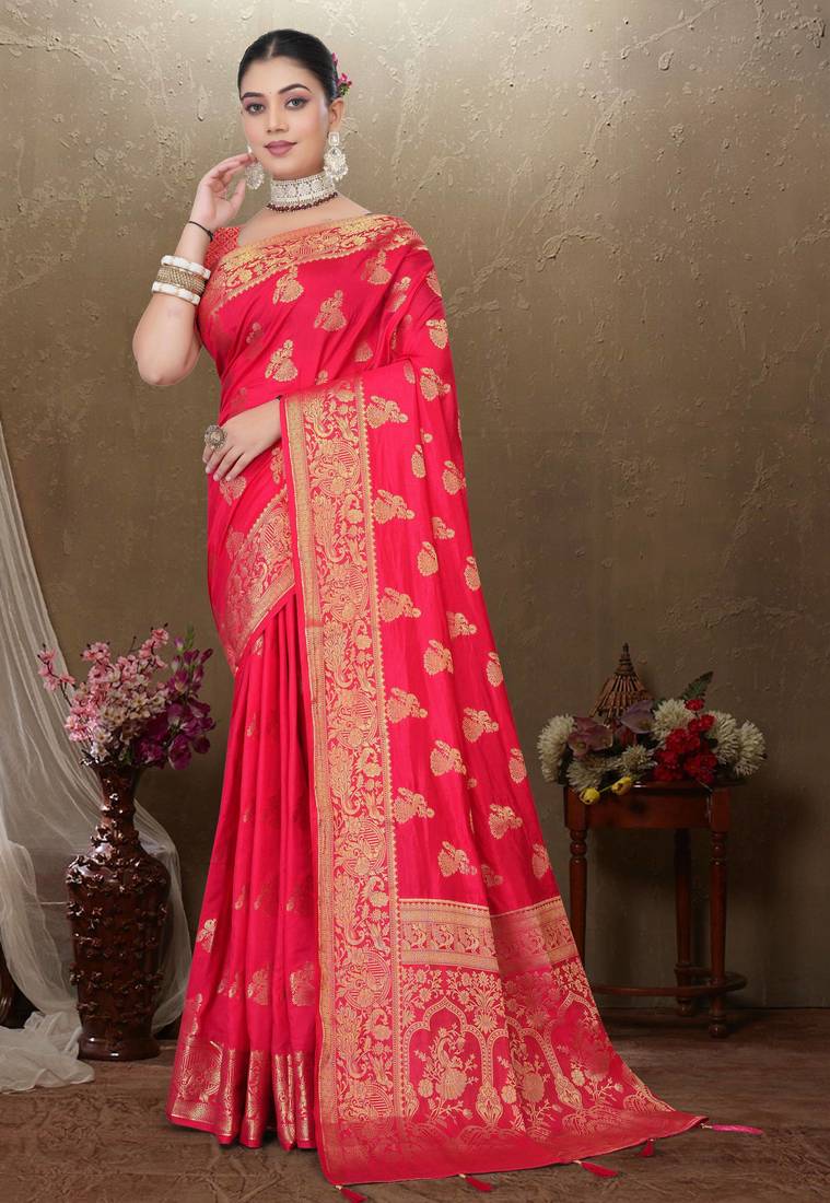 | Product Name | Maharanga Red Dola Art Silk Saree With Rich Zari Butta Work & Heavy Traditional Border | Unstitched Blouse Piece | |