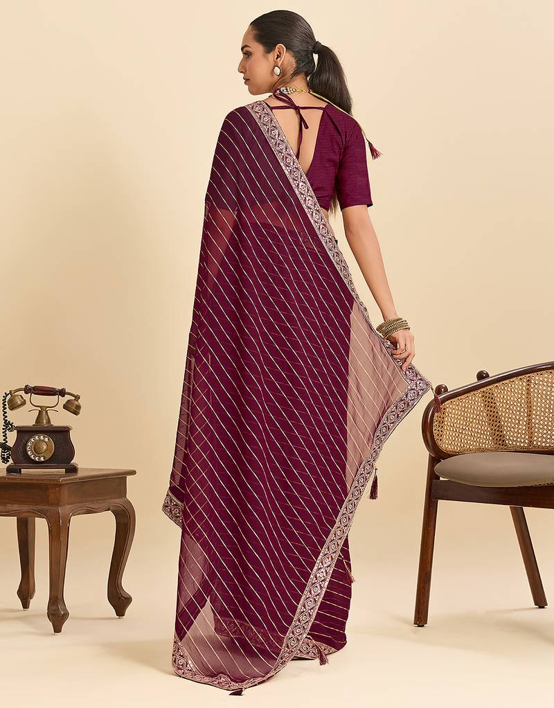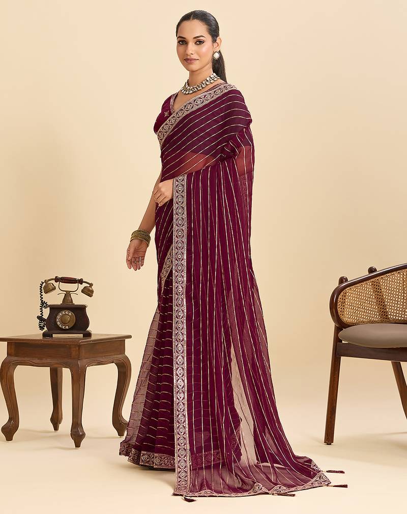 Maroon fancy georgette saree with sequin work and elegant lace border