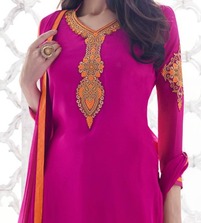 | Product Description | Pink Georgette Embroidered Designer Salwar Suit (Top Length : 2.5mtr, Bottom Length : 2.5mtr, Dupatta Length : 2mtr) |
