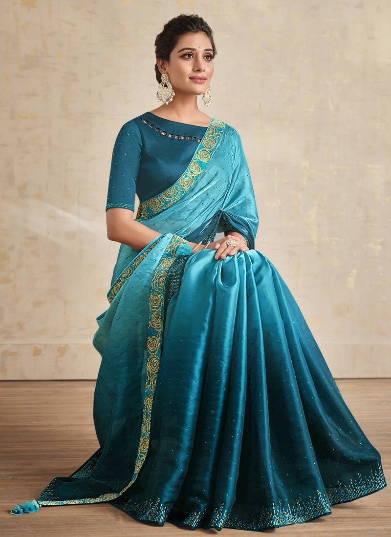 | Product Name | Ocean Blue Satin Silk Heavy Embroidered Saree With Unstitched Blouse Piece | |