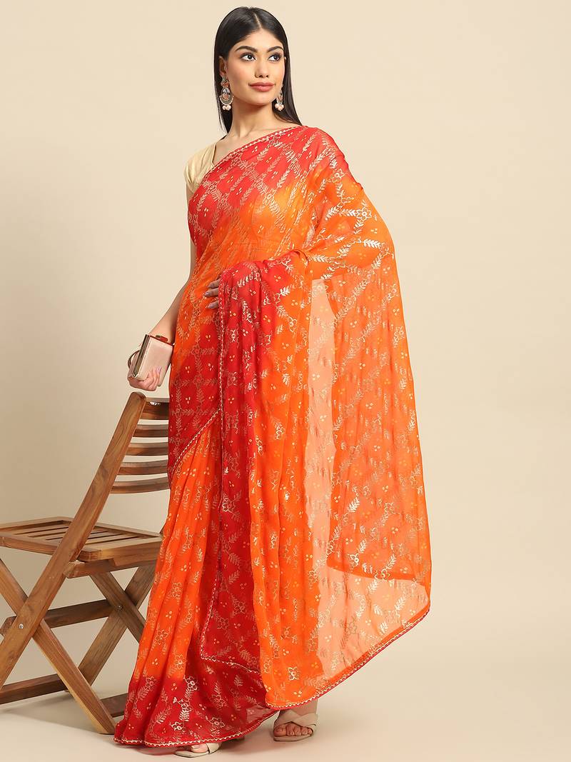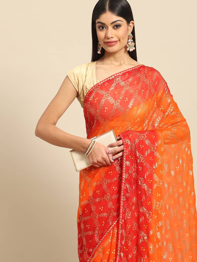 | Product Name | Orange Printed Chiffon Saree With Blouse | |