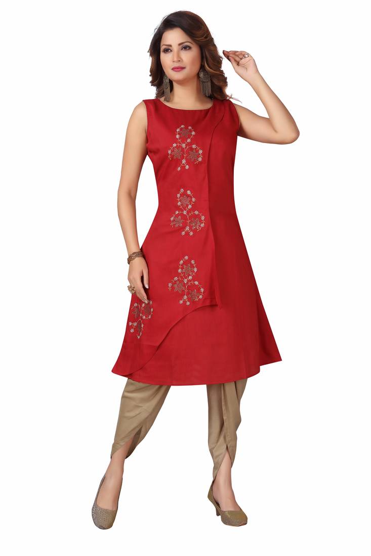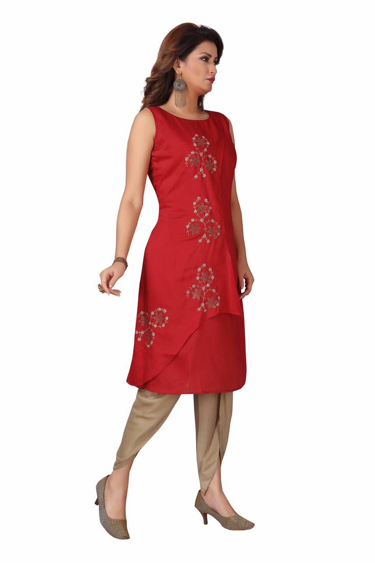 Product Name | Majestin Ladies Muslin Maroon Kurti And Fone Dhoti Set | |