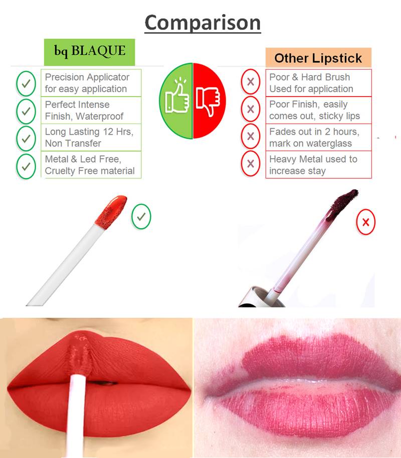 | Product Description | We Don't Use Computerize Images To Disguise Customer, These Are Original Product Images, Bq Blaque Is Brand Registered In India Brought Matte Liquid Lip Gloss Lipstick Which Are Highly Pigmented, Waterproof, Kiss Proof, 100% Vegan & Cruelty Free, These Are Not Tested On Animals, Long Lasting Stay For 8 10 Hrs, Perfect For Office, Home Use, Party Wear And Good Gift For Festive Occasion Or Any Other Day To Your Loved Ones |