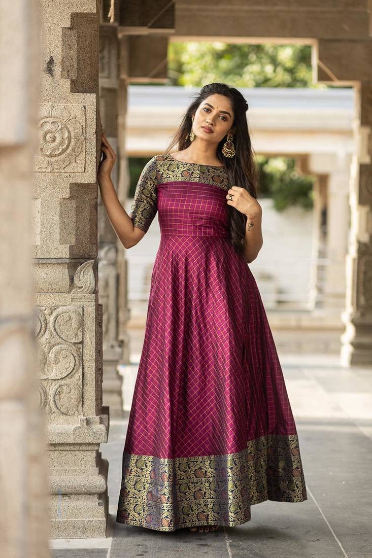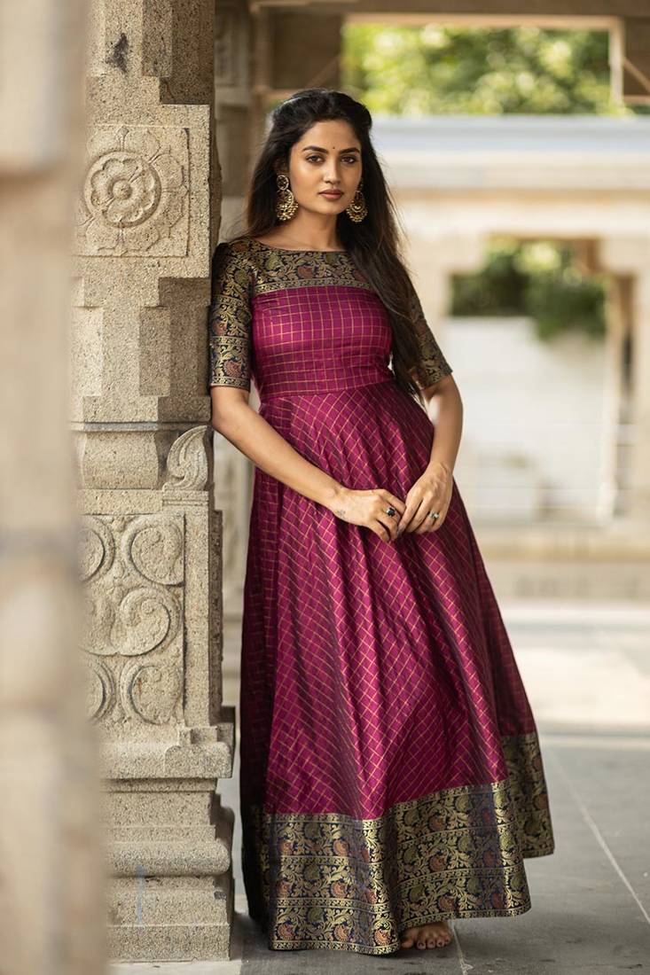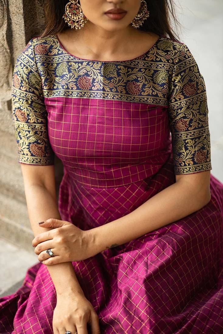 | Product Description | Bring Out The Traditional Vibe Of Zari Checks And Banaras Borders Spunked With The Modern Silhouette Of This Maxi And Detailed Yoke In Our Latest Creation. Doesn't This Ring Festive Mood? |
