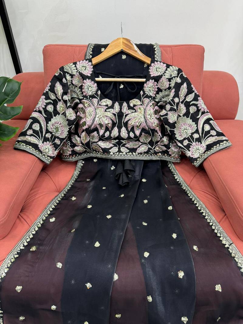 | Product Name | Black Jimmy Choo Silk With 3mm Sequence Embroidery Work Lace Border With Blouse | |