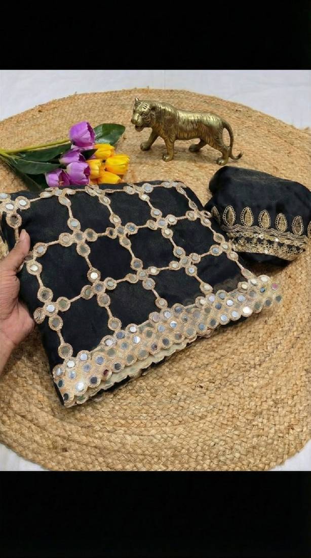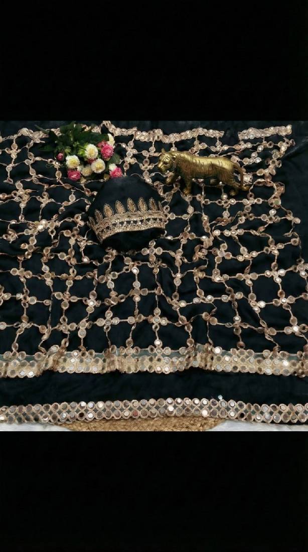 | Product Name | Black Pure Soft Fandy Sattin Silk With Real Mirror Work Lace Border Saree | |