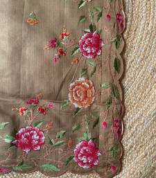 Brown matka silk saree with heavy floral embroidery border with running blouse