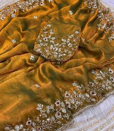 Gold fendy chiffon two ton saree and blouse with sequence embroidery work
