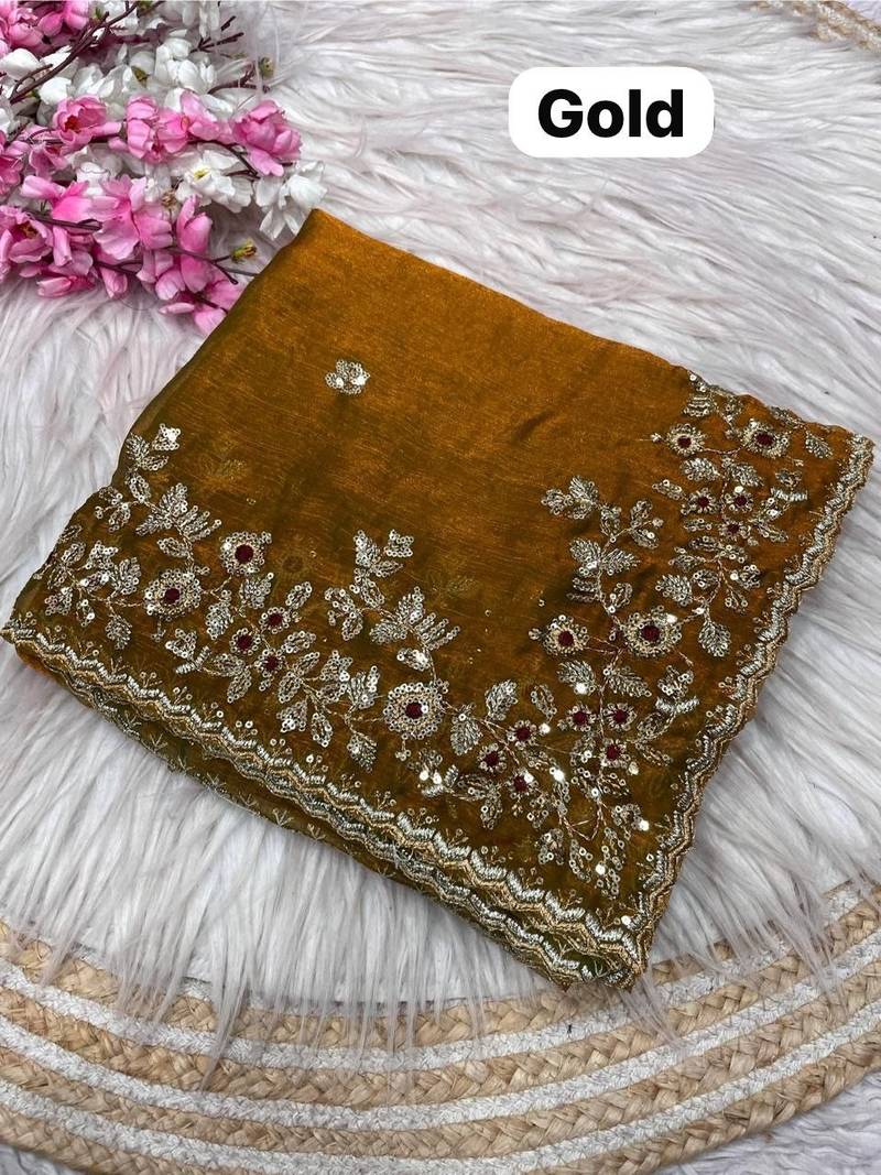 | Product Name | Gold Fendy Chiffon Two Ton Saree And Blouse With Sequence Embroidery Work | |