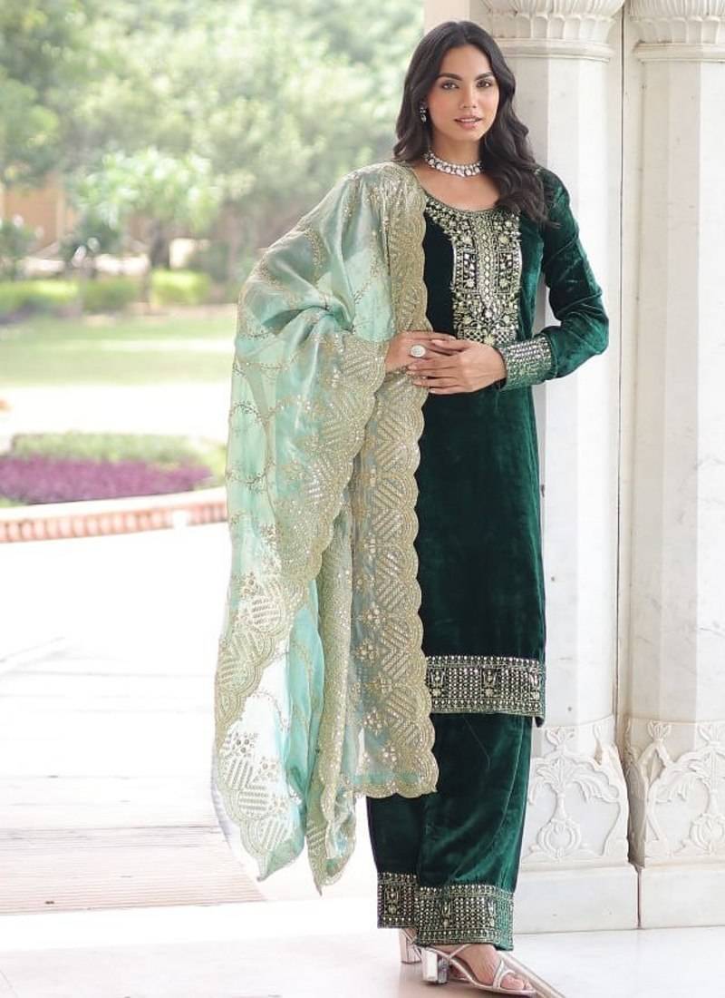 | Product Name | Green Embroidered Velvet Salwar Suit With Dupatta | |
