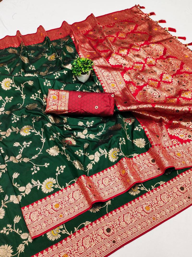 | • | Saree | : | Color- Green / Fabric- Faux Banarasi |