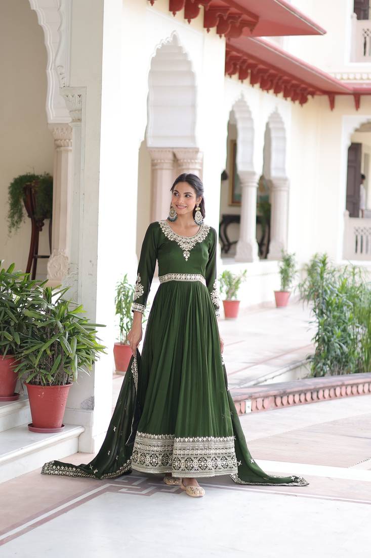 | Product Name | Green Vichitra Silk Sequins Zari Embroidered Kurti With Dupatta | |