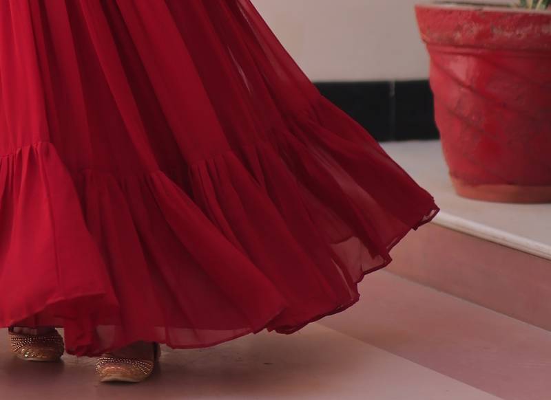 | Product Description | Fabric & Work : Faux Blooming With Sequins Multithreaded Beads Embroidered Work.