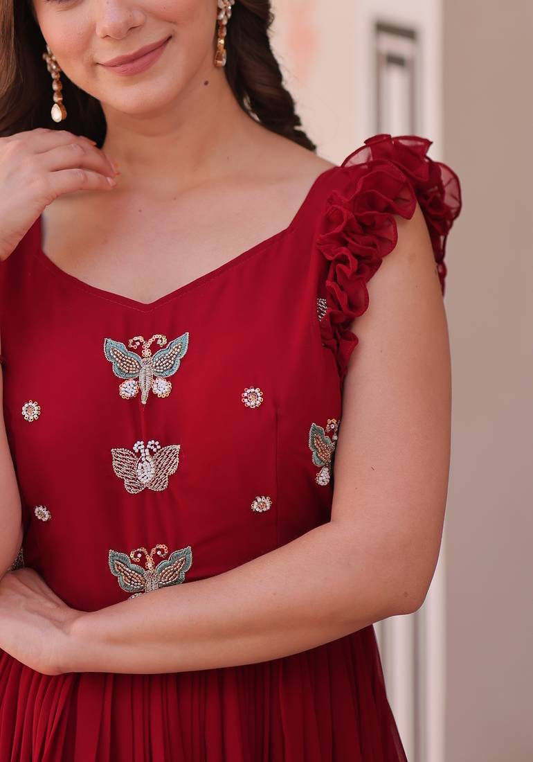 Maroon faux blooming kurti with beads embroidery work