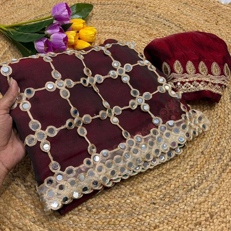 | Product Name | Maroon Pure Soft Fandy Sattin Silk With Real Mirror Work Lace Border Saree | |